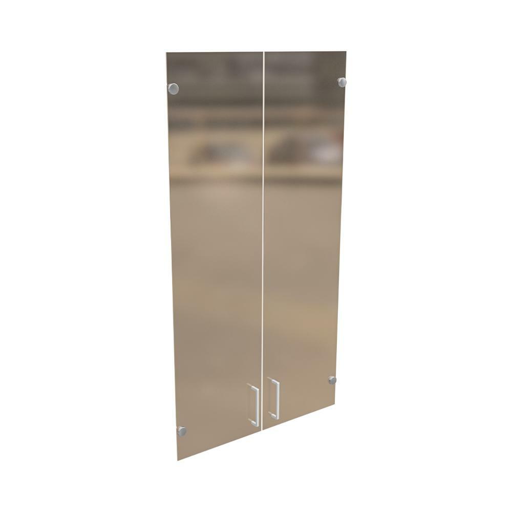 КОНТИНЕНТ PRO: проставки цвета "металлик" между опорами и столешницей, опоры брифингов квадратного сечения - 46 мм, двери на шкафах и тумбах - внутренние, бронзовое стекло 4 мм, ручки-скобы 128 мм (хром матовый).